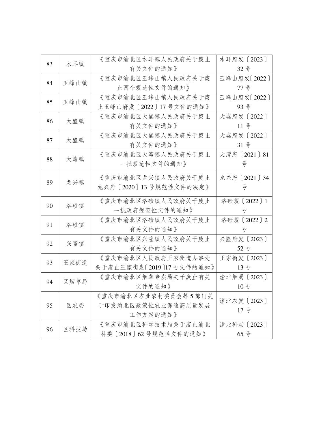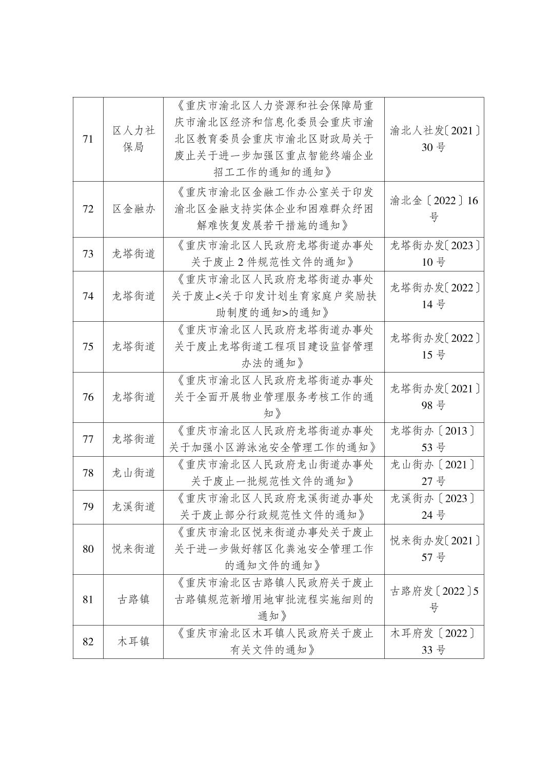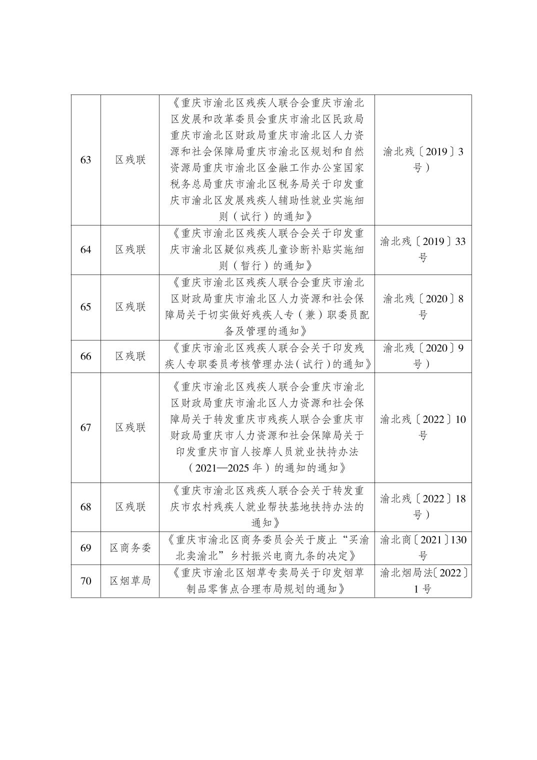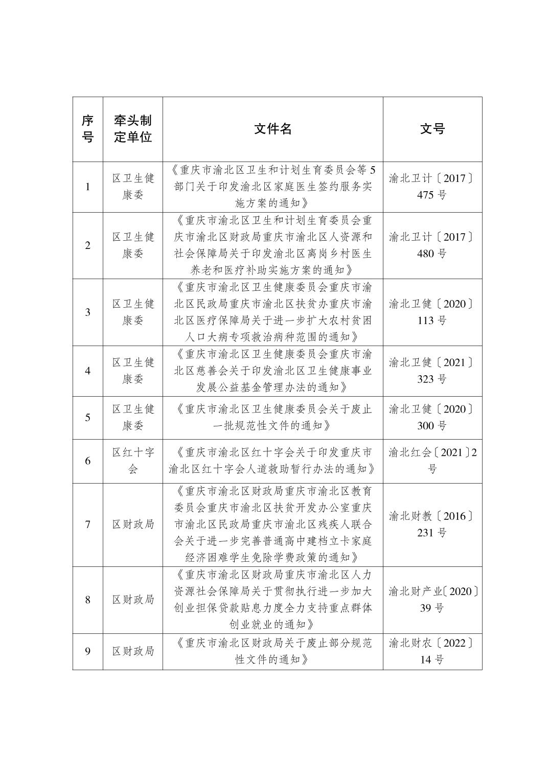 渝北區(qū)現(xiàn)行有效的部門規(guī)范性文件目錄