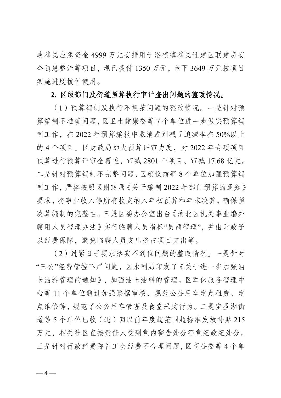渝北區(qū)審計局關于2020年度區(qū)級財政預算執(zhí)行和其他財政收支審計查出問題整改落實情況的公告