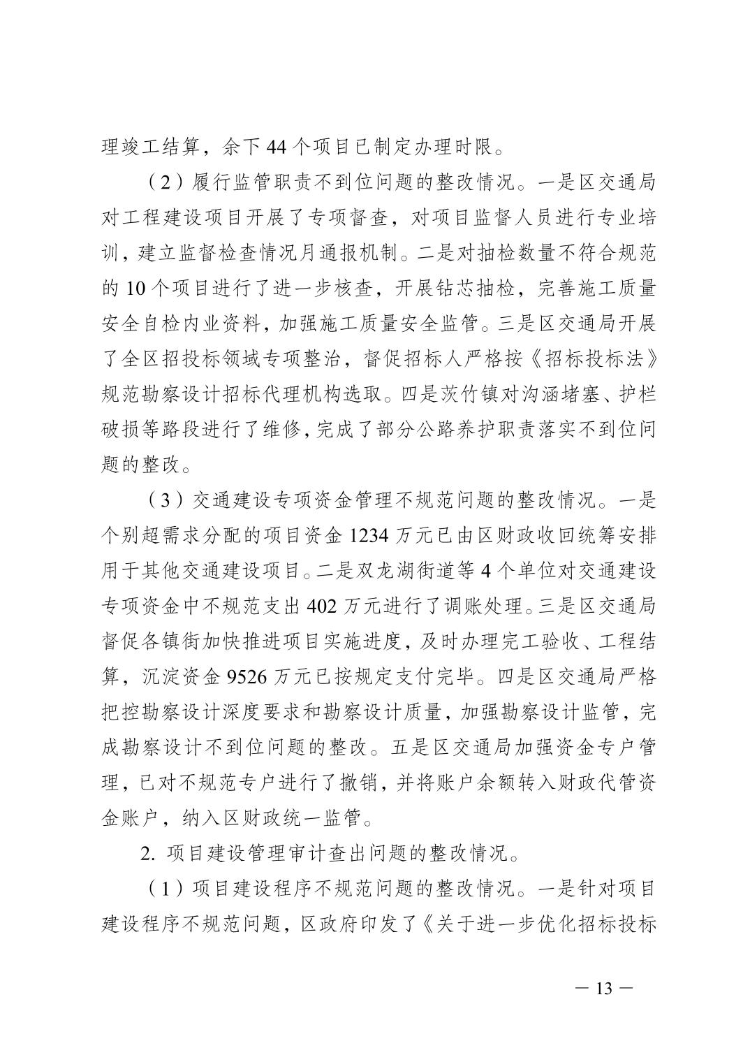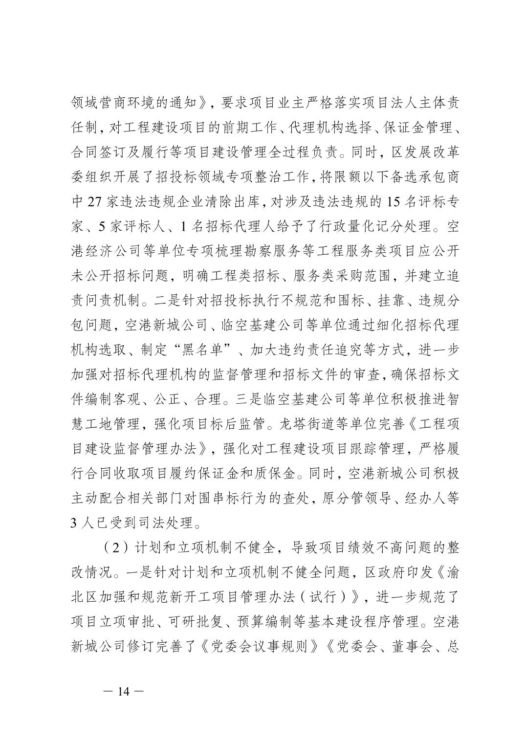 渝北區審計局關于2021年度區級預算執行和其他財政收支審計查出問題整改情況的公告